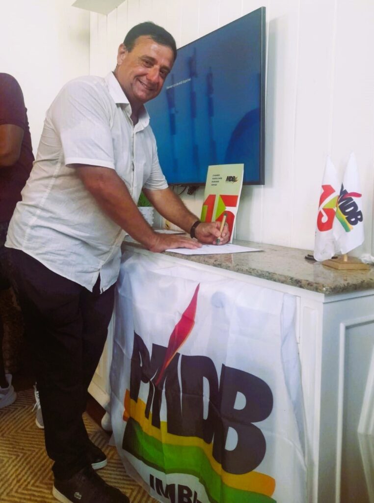 Prato principal da reunião: a assinatura da ficha de filiação do provável candidato a majoritária das próximas eleições municipais pelo MDB, o professor universitário e funcionário do TRT Carlos Alberto Crispim, o qual se mostrou emocionado e feliz por participar deste momento tão importante para o histórico partido. Crispim afirmou que está vindo para fazer política para todos, e não em benefício próprio.