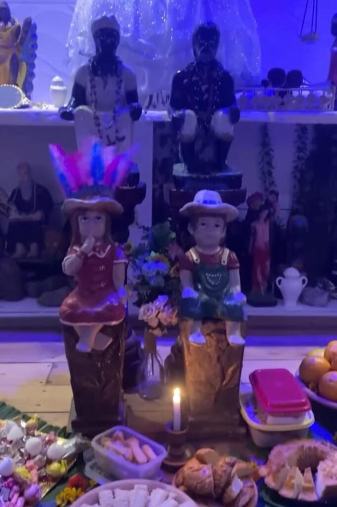 Junto a eles estão os Erês, espíritos que se apresentam como crianças e trazem mensagens de carinho, brincadeira e simplicidade. Eles ensinam que a espiritualidade não é feita somente de rituais, mas também de momentos de afeto e de partilha, como a doçura celebrada na entrega dos doces.