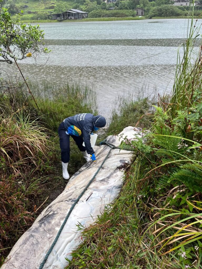 De acordo com o PMP-BS, devido ao difícil acesso ao local, não foi possível identificar a espécie do cetáceo imediato. Com o apoio da Prefeitura de Garopaba, o animal foi retirado da lagoa para a realização dos procedimentos de biometria e coleta de amostras.