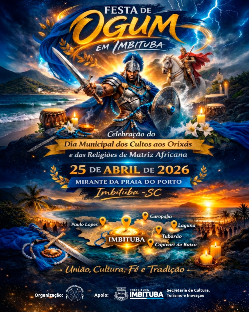 Imbituba realiza, no próximo sábado (25), a celebração oficial do Dia Municipal dos Cultos aos Orixás e das Religiões de Matriz Africana. A data estipulada pela Câmara de Vereadores é no dia 23, pela Lei nº 5.508/2024 e marca um importante reconhecimento à diversidade religiosa e cultural presente na cidade.
