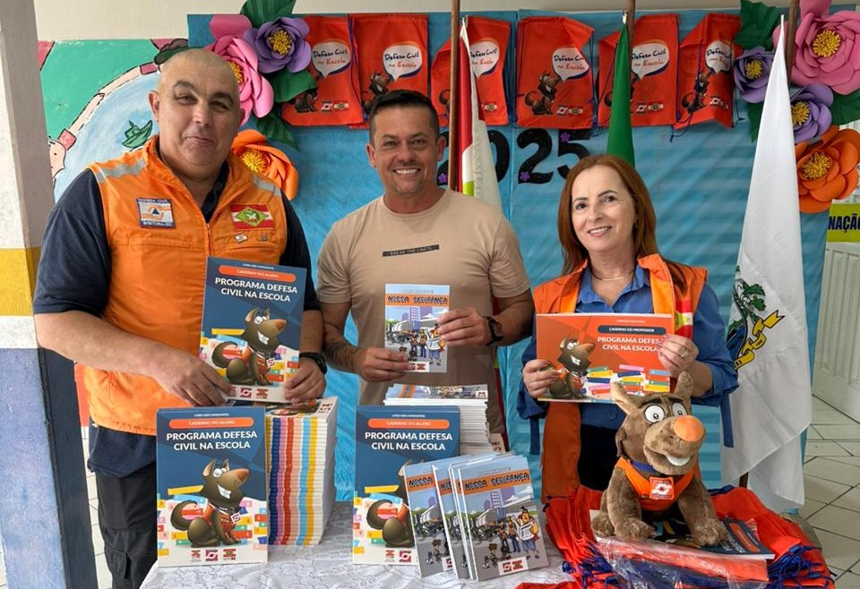 A Escola Básica Municipal Basileu José da Silva, em Imbituba, recebeu nesta quarta-feira (1º) a entrega oficial dos materiais pedagógicos do Programa Defesa Civil na Escola. A unidade, localizada no bairro Campo Daviação, foi a primeira do município a implantar a iniciativa estadual, em 2018, e segue como referência na formação cidadã dos estudantes.