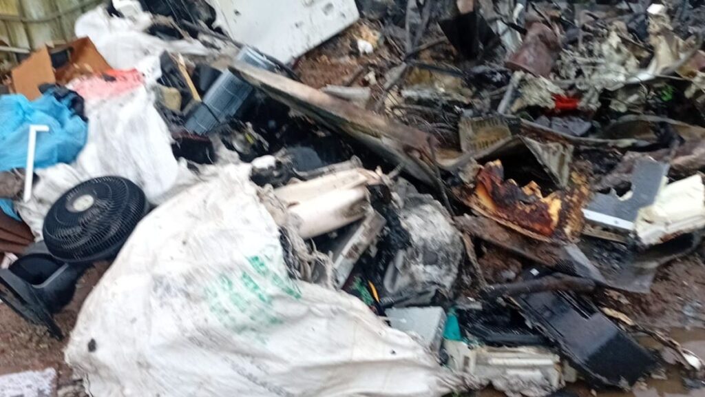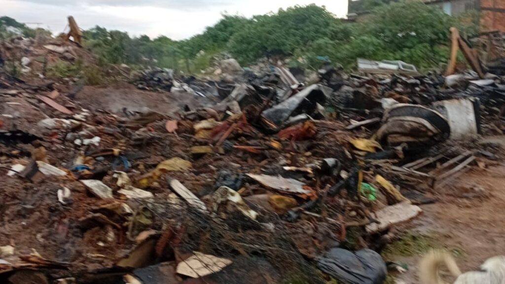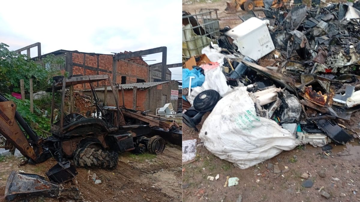 Quando os bombeiros chegaram, o incêndio já havia se espalhado por diversos materiais acumulados no pátio, como geladeiras, máquinas de lavar, colchões e latas metálicas. O tipo de resíduo e a forma de armazenamento favoreceram a propagação.