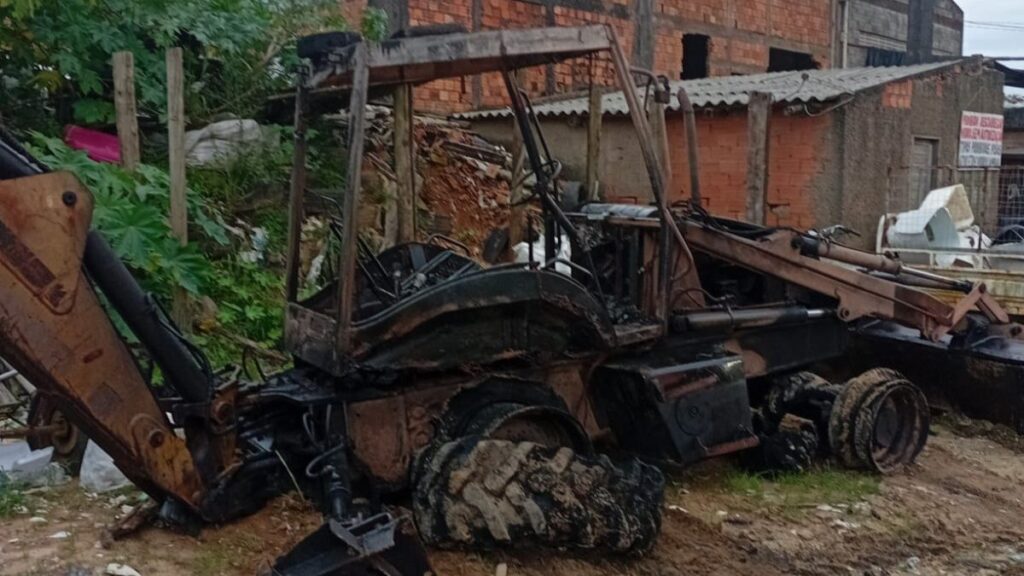 Durante o combate, uma retroescavadeira modelo FB80, da New Holland, sofreu danos por causa da proximidade com o foco do incêndio. Outra máquina que estava na área não foi atingida.