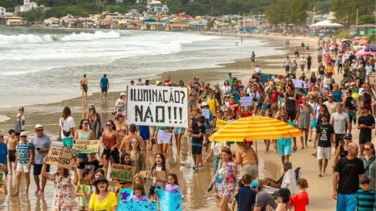 Nesse sentido, os manifestantes alertam para possíveis prejuízos à fauna local. Segundo eles, a luz artificial pode desorientar tartarugas marinhas, aves e outros animais que utilizam a faixa costeira.