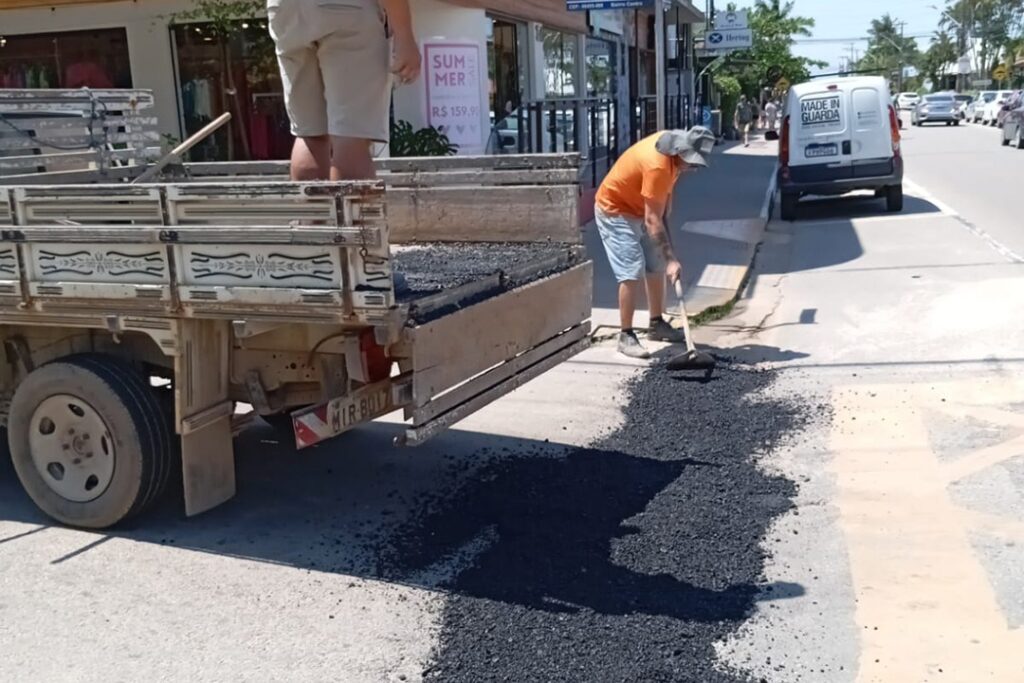 Na Praia da Vigia, a equipe atuou na manutenção das lajotas próximas à orla. No Centro, ao longo da Rua 30 de Dezembro, foram executados reparos no asfalto com fechamento de buracos para garantir melhores condições de tráfego.