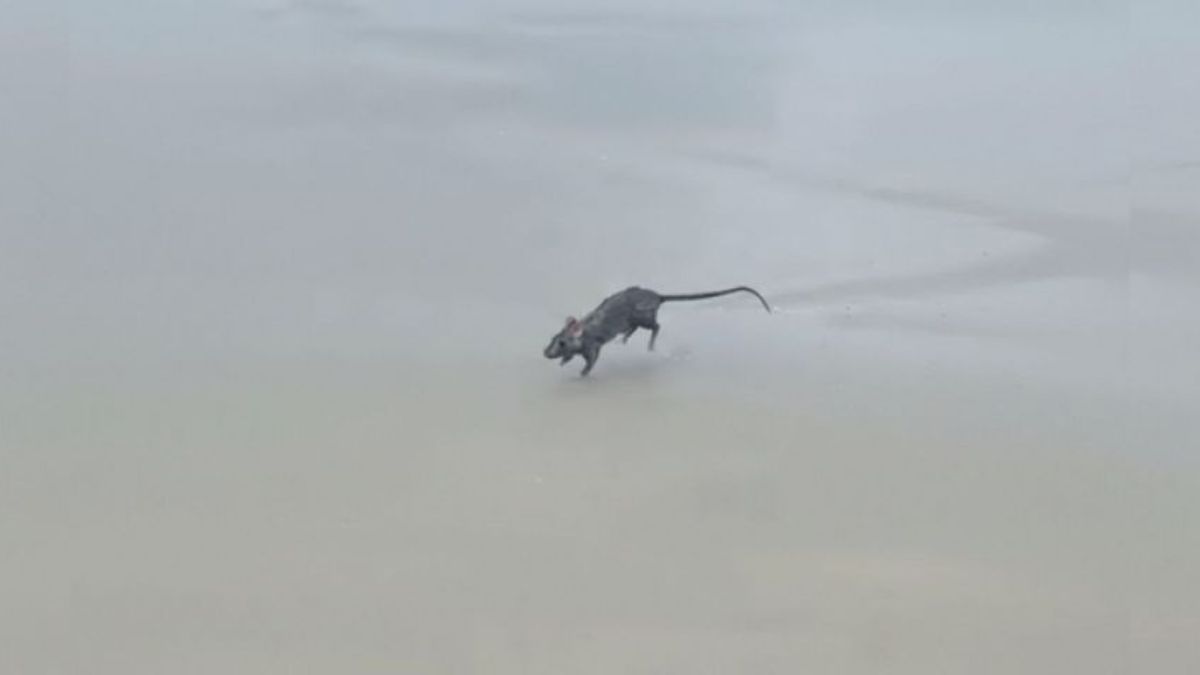 No vídeo, o roedor aparece vivo, nadando próximo à faixa de areia, em meio a pessoas que aproveitavam o mar.